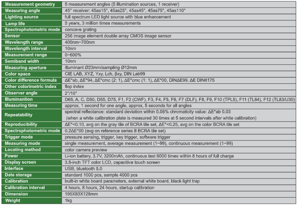 • Using concave grating spectrophotometric technology, with higher resolution, makes color measurement more accurate