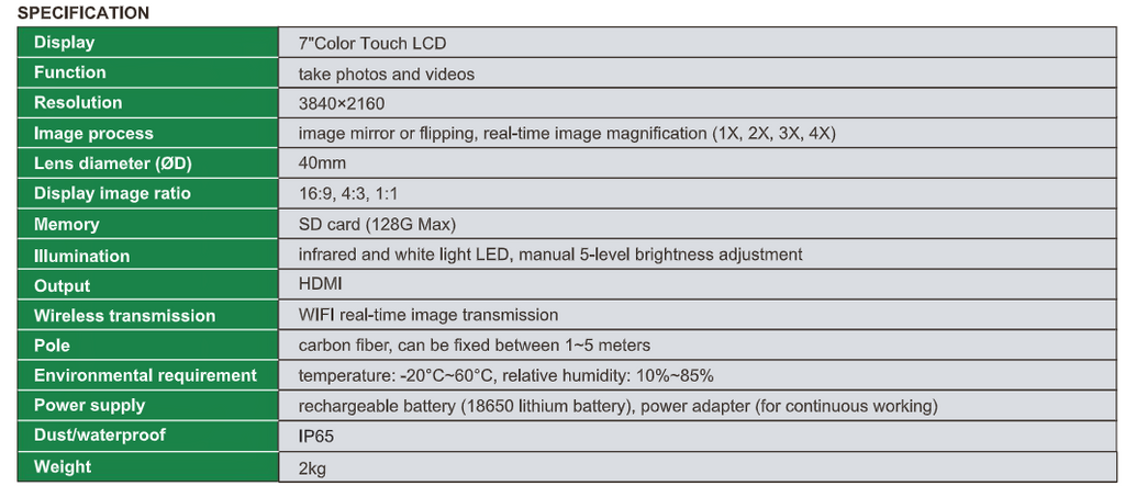 4K Carbon Fiber Telescopic Pole Videoscope - ISV-CF