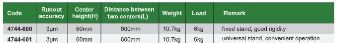 Code Runout accuracy Center height(H) Distance between two centers(L) Weight Load Remark