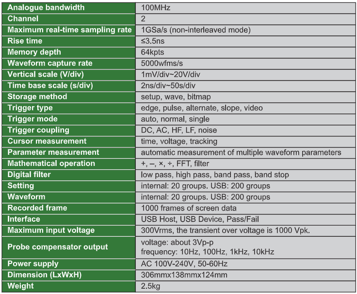 Maximum real-time sampling rate 1GSa/s (non-interleaved mode)