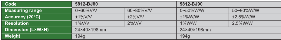 Measuring range 0~60%V/V 60~80%V/V 0~50%W/W 50~80%W/W