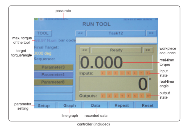 • If NG thread is detected, the alarm is activated and the corresponding NG parameter is displayed in red on the controller