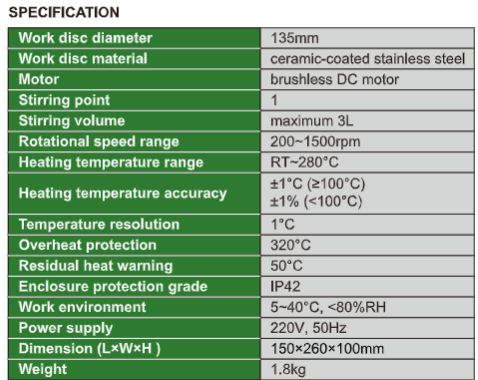 • The stainless steel ceramic-coated working plate is extremely resistant to chemical corrosion
