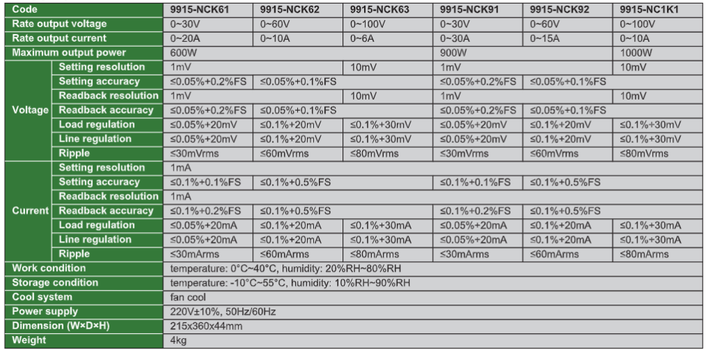 Rate output voltage 0~30V 0~60V 0~100V 0~30V 0~60V 0~100V