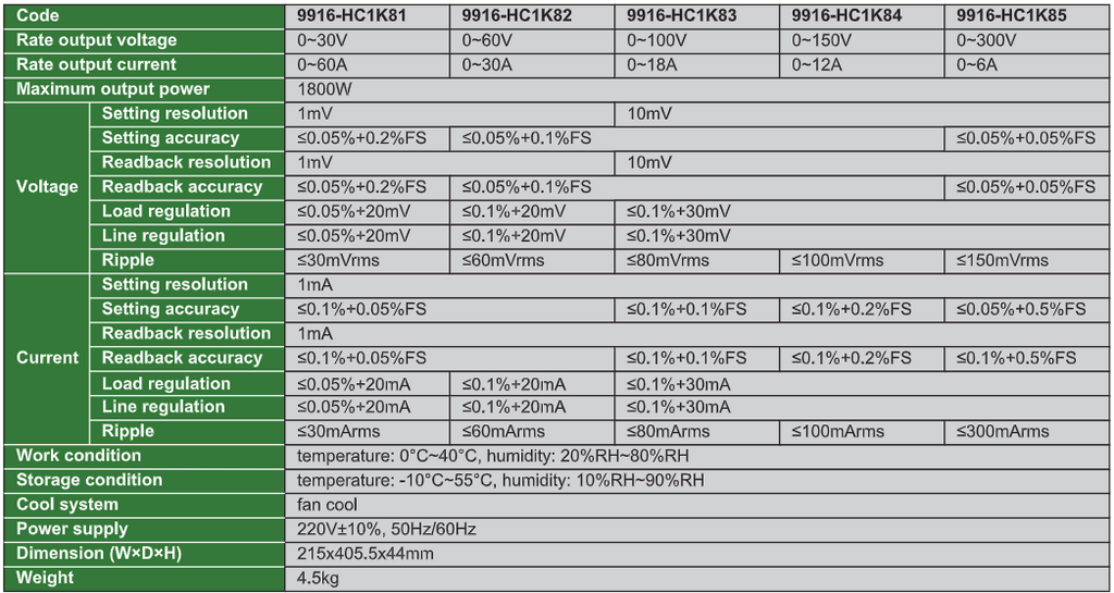 Rate output voltage 0~30V 0~60V 0~100V 0~150V 0~300V