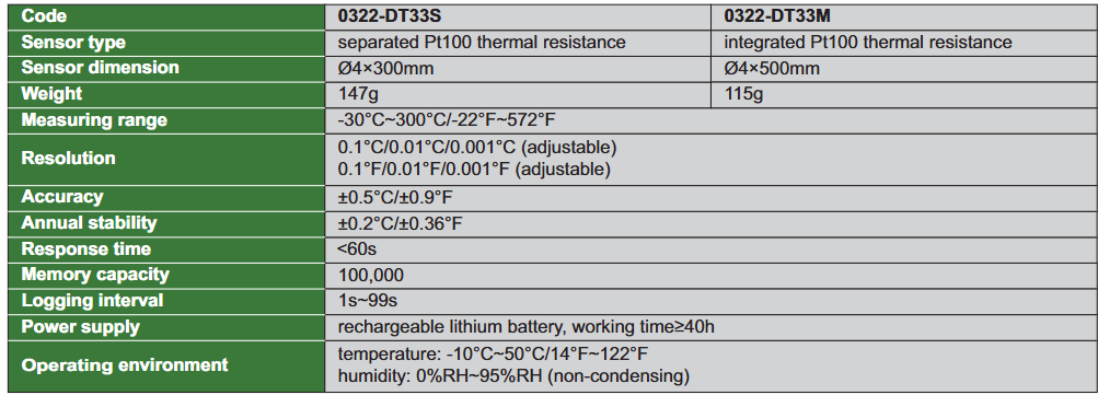 Measuring range -30°C~300°C/-22°F~572°F