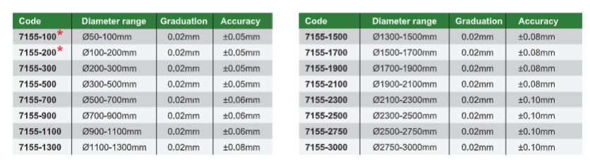 7155-200* Ø100-200mm 0.02mm ±0.05mm