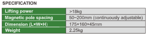 Magnetic pole spacing 50~200mm (continuously adjustable)