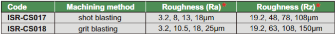 ISR-CS018 Grit blasting 3.2, 10.5, 18, 25μm 19.2, 63, 108, 150μm