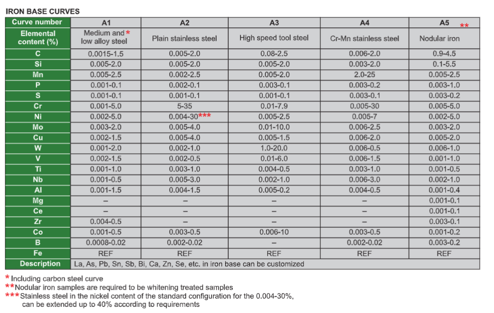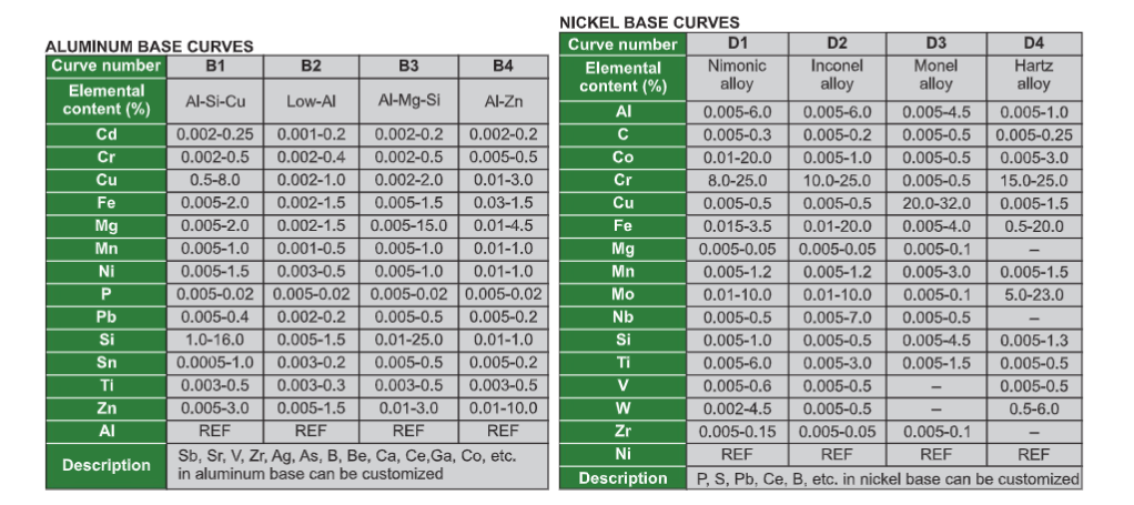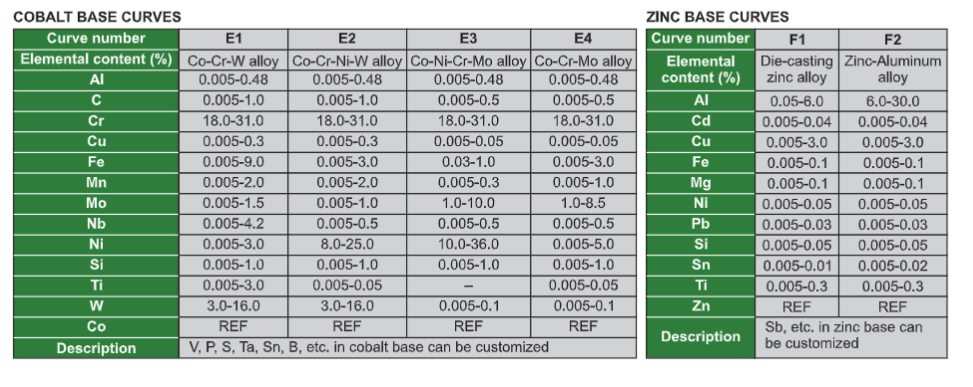 customized curve curves can be added or customized for special base materials (Mg Ti Pb Sn Mn etc)