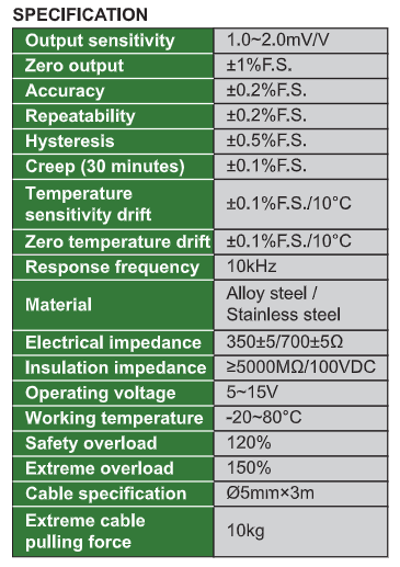 Temperature sensitivity drift ±0.1%F.S./10°C