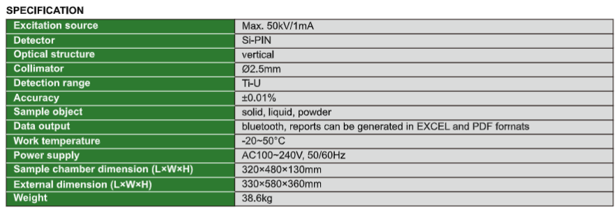 • Quickly analyze the components of precious metals (Au/Ag/Pt/Pd, etc.). detect the purity grade of gold (0-24K), and achieve a detection accuracy of ppm level